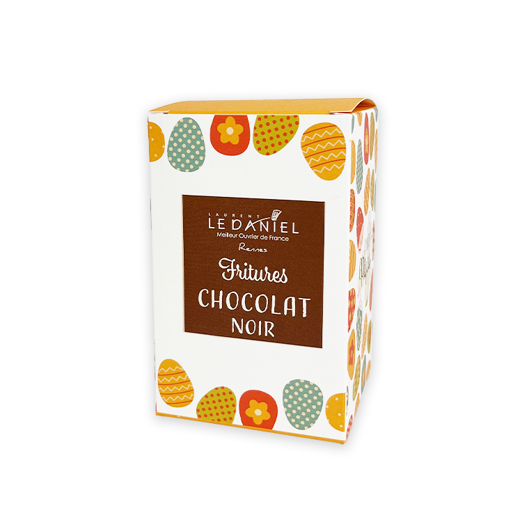 Fondez de gourmandise pour nos quatre sortes de fritures gourmandes ! Chocolat lait, noir, caramel au beurre salé ou fourrées au praliné et gianduja. Boîte de 200g