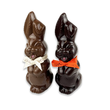 Lapin chocolat noir: chocolat noir (pâte de cacao, sucre, beurre de cacao, émulsifiant: lécithine de SOJA, arôme naturel de vanille), sucre semoule, AMANDE, chocolat blanc au caramel (beurre de cacao, sucre, poudre de LAIT entier, poudre de LAIT écrémé, lactosérum en poudre, sucre caramélisé, émulsifiant: lécithine de SOJA, arôme naturel de vanille, sel), sirop de glucose, NOISETTE, chocolat au lait (sucre, poudre de LAIT entier, beurre de cacao, pâte de cacao, émulsifiant: lécithine de SOJA, arôme naturel de vanille), eau, pâte de cacao, fleur de sel, épaississant : gomme arabique et shellac, BEURRE, colorant rouge (radis, cassis et pomme).